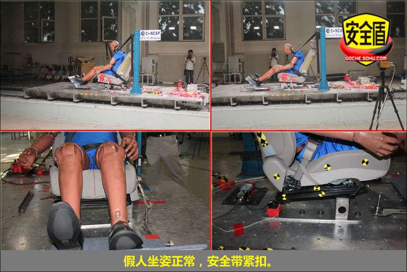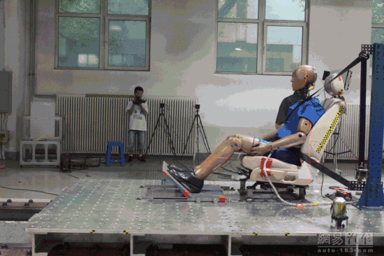 试验规则:鞭打试验是指将试验车辆驾驶员侧座椅及约束系统仿照原车结构,固定安装在移动滑车上,滑车以速度变化量为15.65km/h(正负0.8km/h内)的特定加速度波形发射,模拟后碰撞过程。座椅上放置BioRID II型假人,通过测量后碰撞过程中颈部受到的伤害情况,用以评价车辆座椅头枕对乘员颈部的保护效果。
